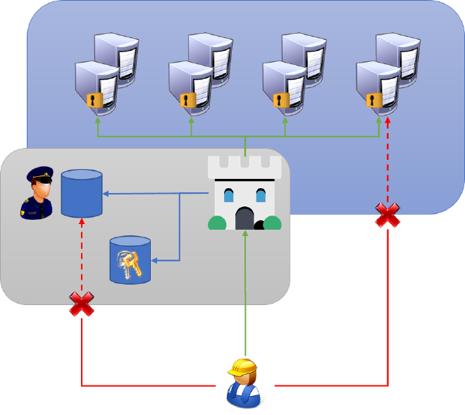 Les administrateurs ne se connectent plus directement aux serveurs, ils n’en connaissent d’ailleurs plus les codes d’accès. Il est désormais simple de garder une matrice de quel administrateur a droit à quels serveurs.