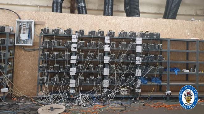 Petite ferme de minage découverte par les forces de l’ordre, image West Midlands Police (UK)